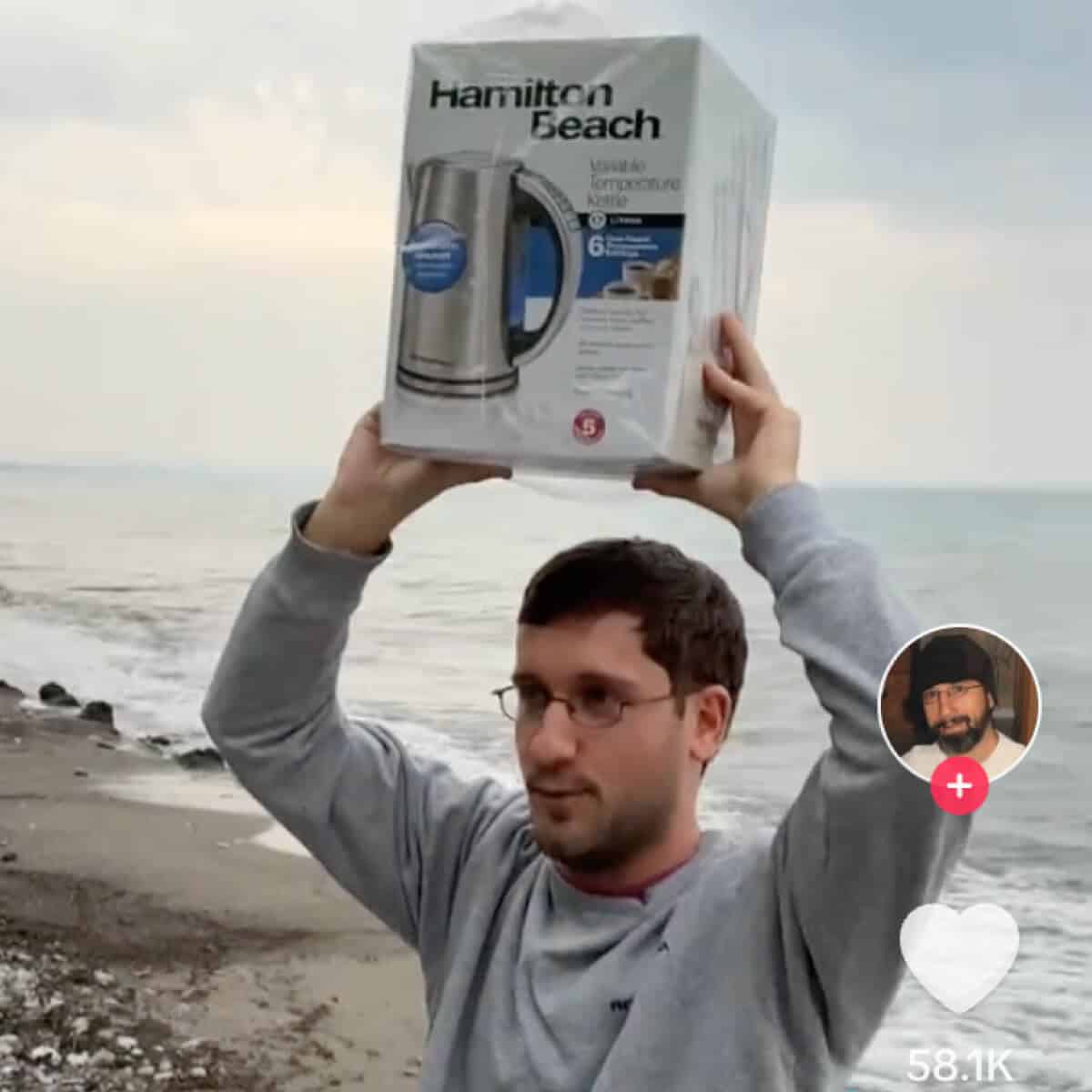 Where some may have seen a means to boil water, Stager — an entertainer who posts comedy videos on TikTok and Instagram — saw opportunity in the fun coincidence between the kettle’s brand and his location. “I am holding a Hamilton Beach branded, variable temperature kettle on a beach in Hamilton, Ontario, Canada,” he said over crashing waves. “We have never seen anything like this before. This is the first time this has happened in recorded history.”